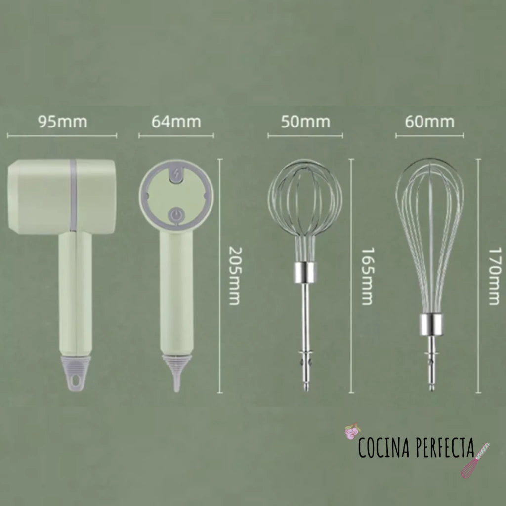 Batidor eléctrico para uso en cocina y repostería. Facilita la preparación de mezclas y recetas.